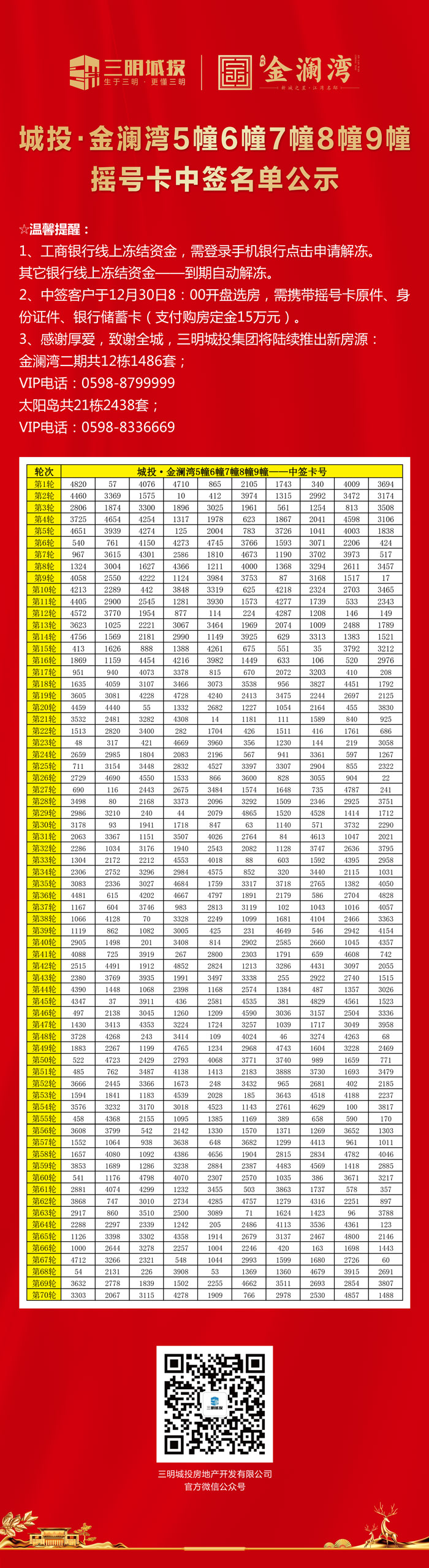 城投·金瀾灣5幢6幢7幢8幢9幢開盤活動搖號卡中簽名單公示