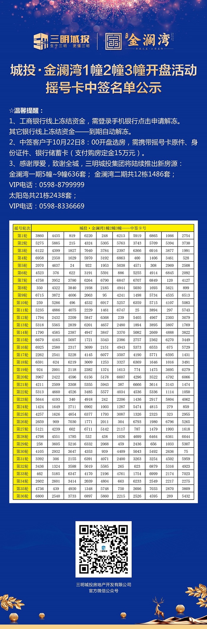 金瀾灣1幢2幢3幢搖號(hào)中簽名單