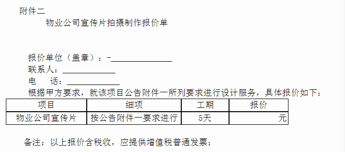二、比選項目名稱:物業(yè)公司宣傳片拍攝制作