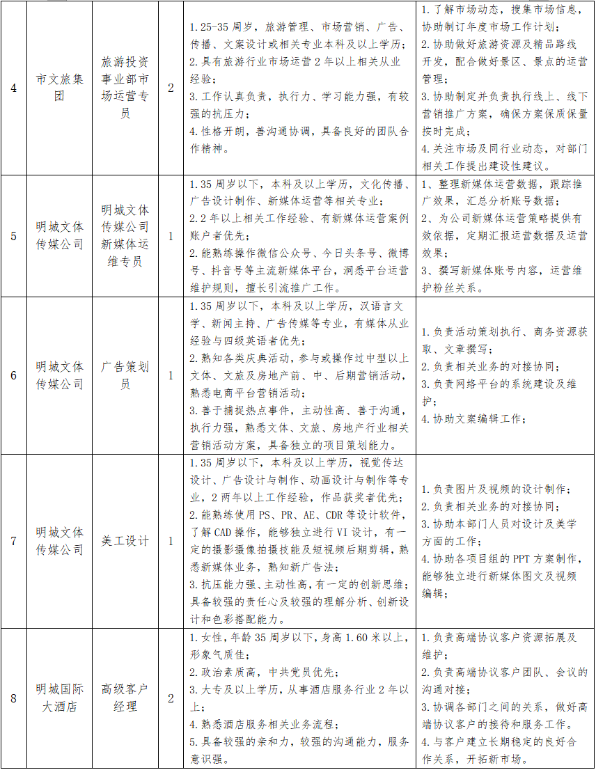 因工作需要,三明城發(fā)集團(tuán)權(quán)屬企業(yè)面向社會(huì)公開招聘,具體如下: