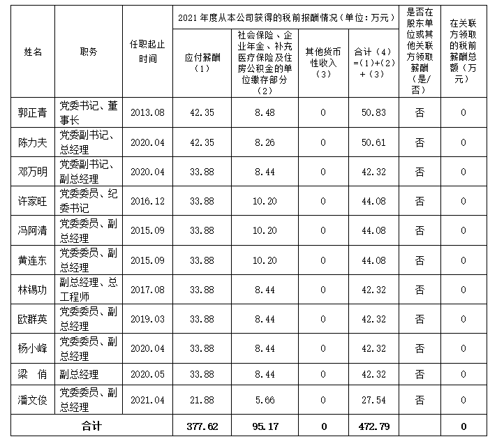 根據(jù)市國資委要求,現(xiàn)將我司企業(yè)負責(zé)人2021年度薪酬信息進行公開披露,具體詳見下表: